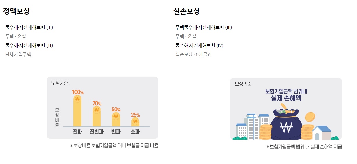 재해가 났을떄 보상기준은 정액보상과 실손보상 두가지 방식이 있는데요