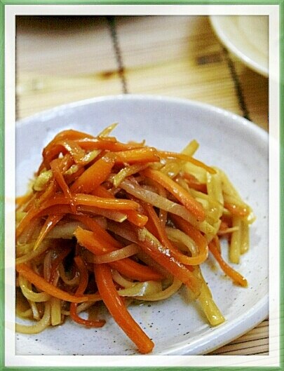 - 단무지를 가늘게 채 썬 후 키친타월로 물기를 제거합니다.