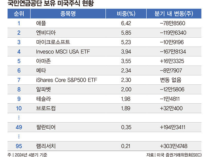 이 표를 보면, 국민연금이 보유하고 있는 미국 주식의 현황을 확인할 수 있어요. 애플과 마이크로소프트는 각각 10% 이상의 비중을 차지하고 있으며, 최근 주가 상승에 힘입어 국민연금의 수익률을 크게 끌어올렸답니다.