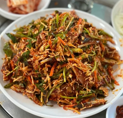 담백하고 쫄깃한 꼬시래기의 매력을 가장 잘 살릴 수 있는 요리입니다.