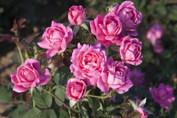 안젤라장미는 넝쿨장미 중에서도 꽃이 풍성하고 화려해 정원에 생기를 더하는 대표적인 품종입니다. 선명한 진분홍색이 특징이며, 성장 속도가 빨라 울타리나 벽면을 빠르게 장식할 수 있습니다.